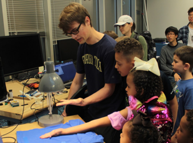 Designed demonstration for grade school students during National Robotics Week tours. A Raspberry Pi running OpenCV would recognize the “openness” of any person’s hand, and an Arduino PID controller would then actuate a 3D-printed hand to mimic it.